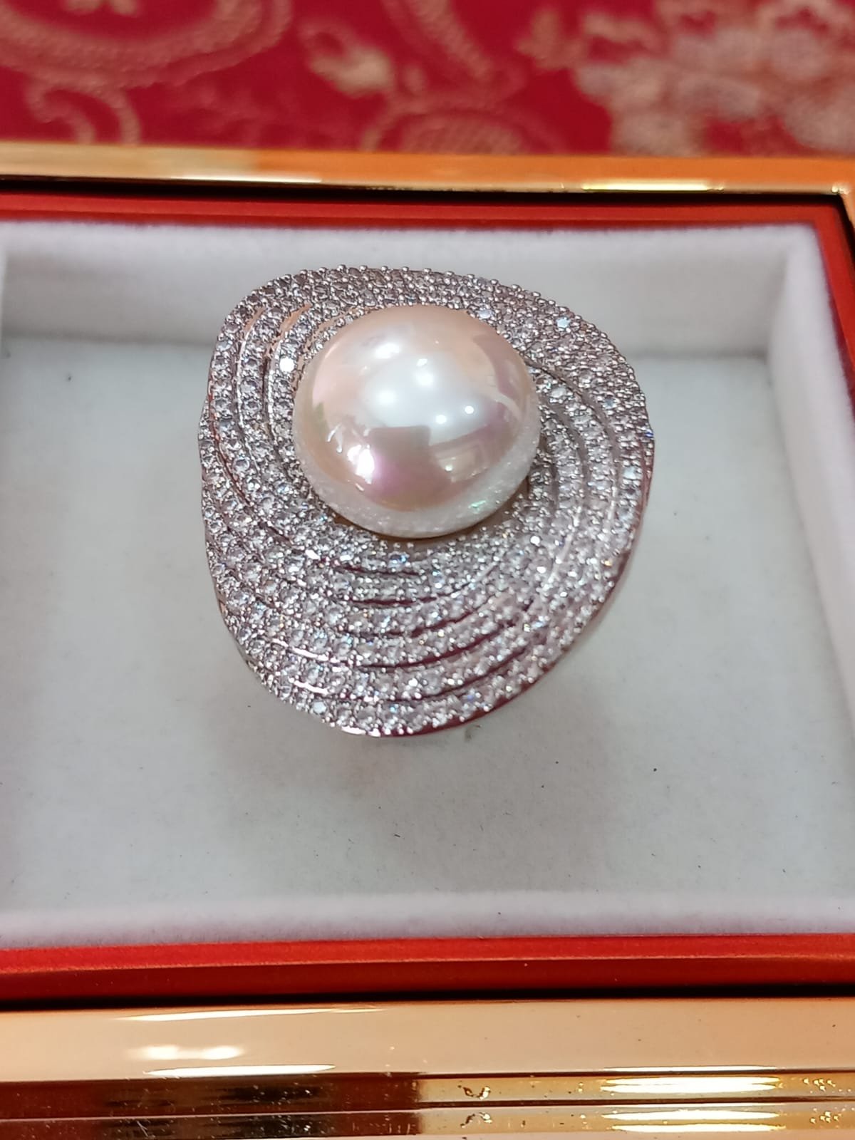• Pietre: Zirconi bianchi pavé e perla sintetica centrale