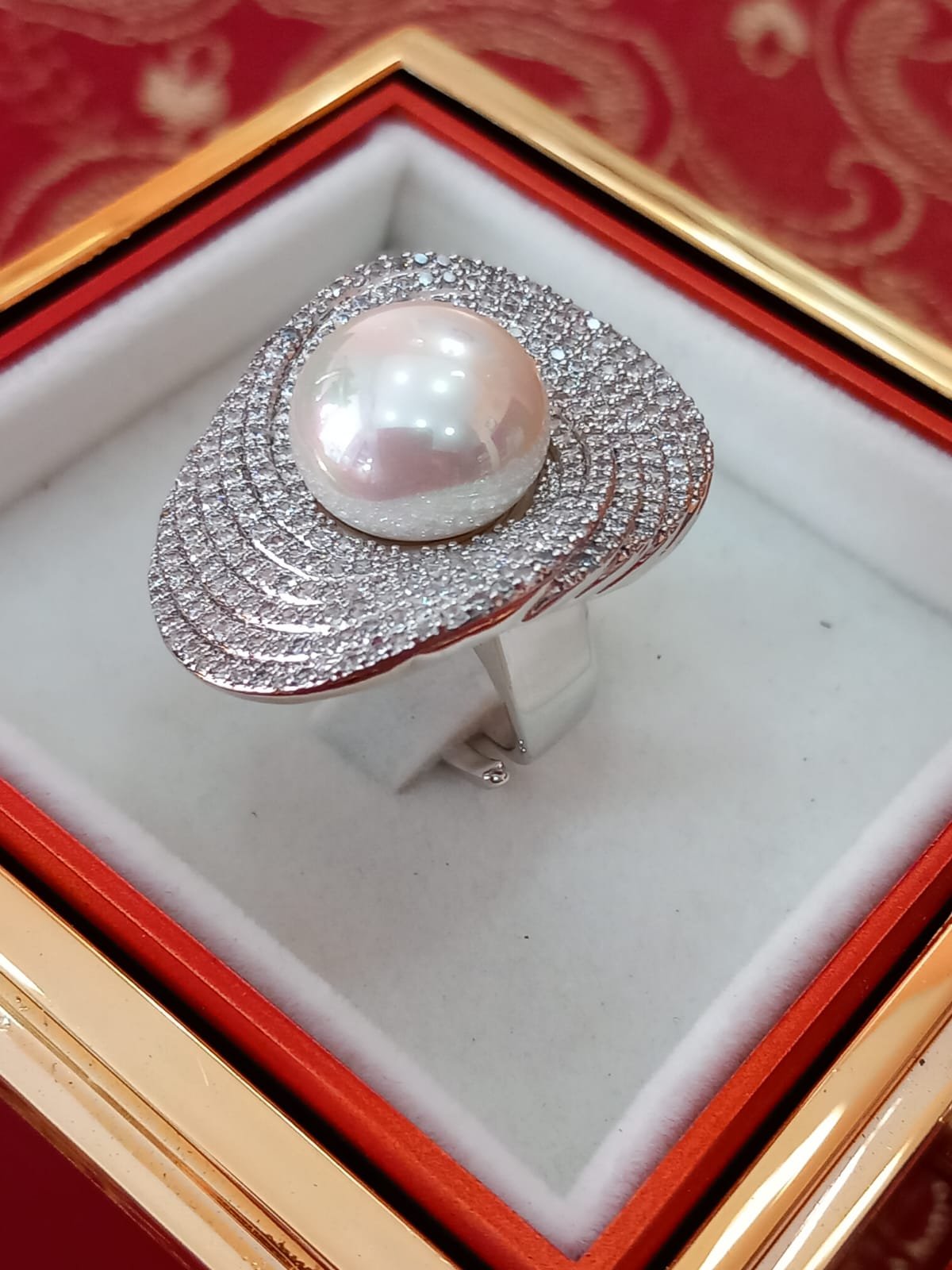 Anello con Perla e Zirconi Pavé – Alta Bigiotteria Italiana