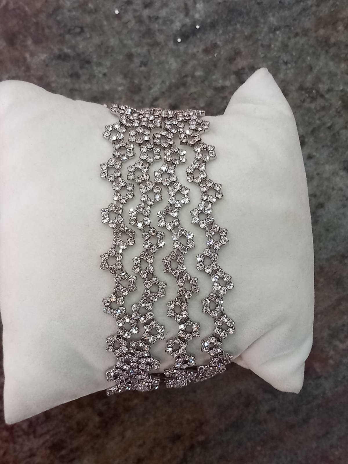 Bracciale multifilo color argento realizzato in alta bigiotteria italiana, caratterizzato da una lavorazione intrecciata che esalta la brillantezza degli zirconi bianchi. Il design moderno e scenografico avvolge il polso con luminosità e raffinatezza, rendendolo perfetto per eventi eleganti, cerimonie e serate importanti. Un accessorio che non passa inosservato e aggiunge un tocco di classe a qualsiasi outfit.